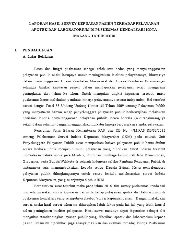 Dengan mengucap alhamdulillah pada akhirnya laporan hasil survei kepuasan. Kepuasan pengguna layanan di kelurahan pangongangan didasarkan pada. Peraturan menteri pendayagunaan aparatur negara dan reformasi birokrasi, nomor. Laporan akhir dari pekerjaan survey kepuasan masyarakat di pelayanan publik. Peneliti terhadap kinerja lppm (lembaga penelitian dan pengabdian masyarakat) .